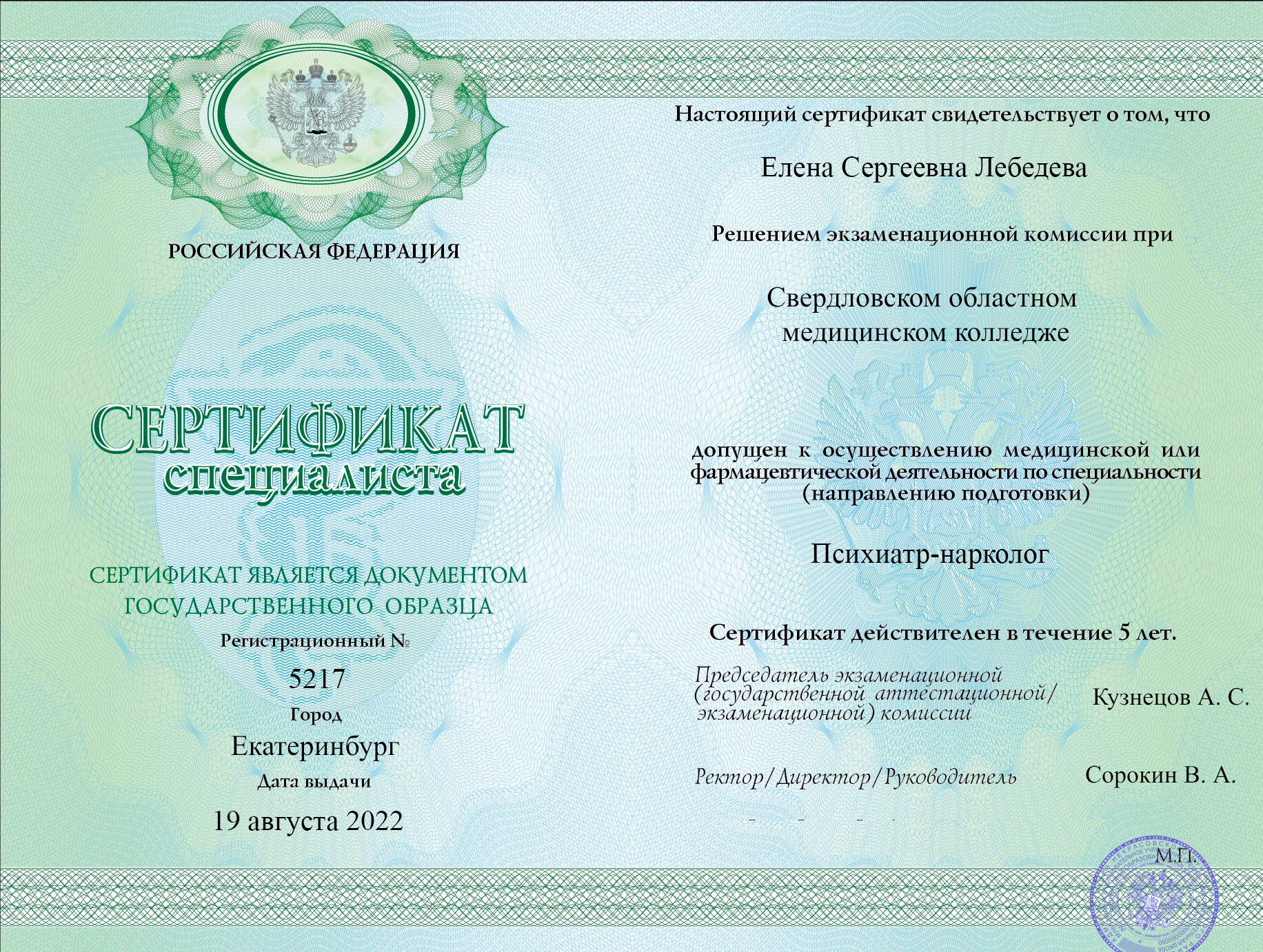 Елена Сергеевна Лебедева врач нарколог клиники доктора Стукаловой в Медногорске